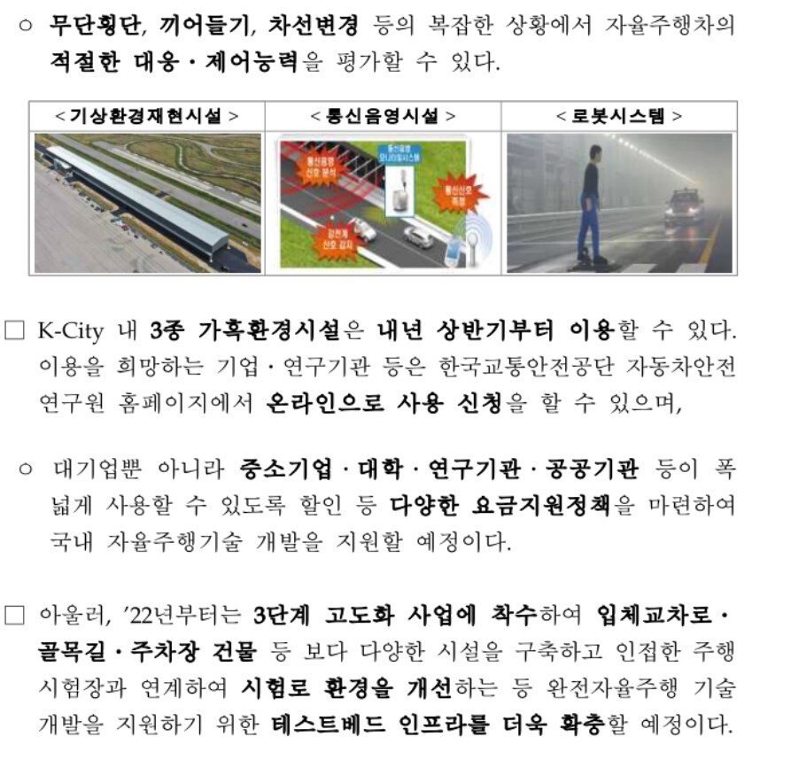 국토부에서는 18년도부터 K-City 사업을 진행하고 있는데, 이 사업의 핵심이 자율주행 자동차입니다.