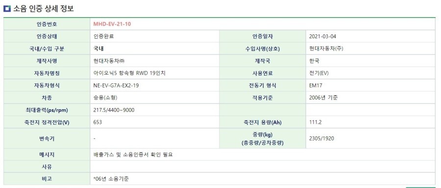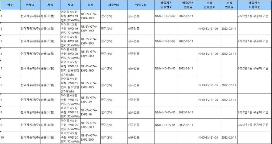 지금 보시는 자료가 작년 아이오닉 5가 출시되기 전에 알려드렸던 인증 내용인데요.