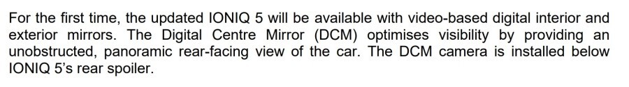 신형 아이오닉5는 디지털 센터 미러(DCM) 기능이 새롭게 제공됩니다.