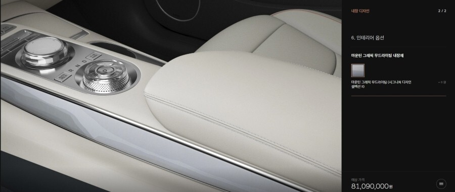최고급 사양인 230만원을 추가한 가격은 8109만원입니다.