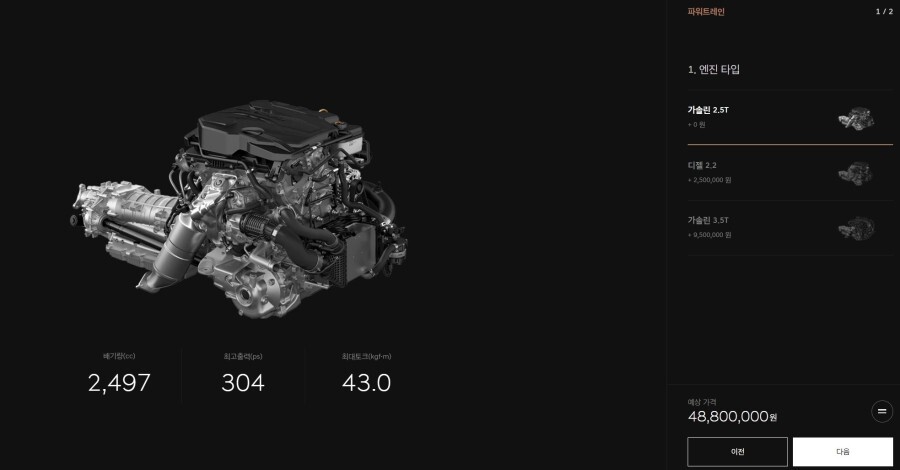 내연기관 GV70의 가격이 4880만원에서 시작해서 옵션을 포함한 6천만원 중반에서