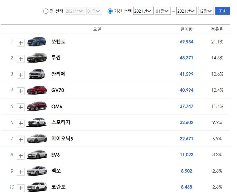 이 정도의 판매량이라면 6위를 차지한 스포티지 입장에서 절반에 가까운 1만 대 정도만 LPG로 판매할 수 있다면 위상 자체가 달라지게 되죠!