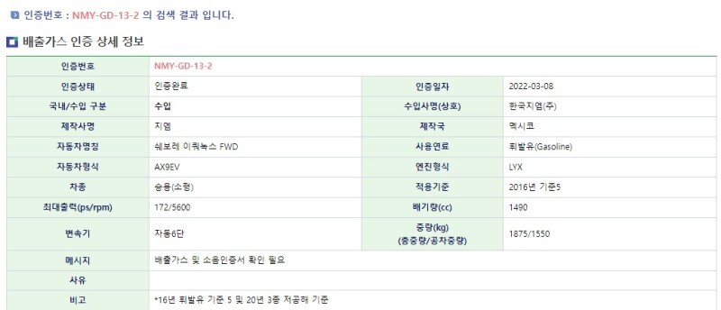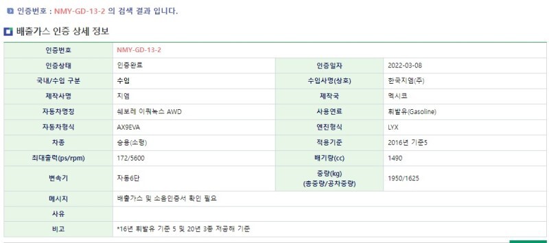 6단 변속기와 AWD 4륜이 조합되는 것을 쉐보레 공홈을 통해서 확인할 수 있네요!