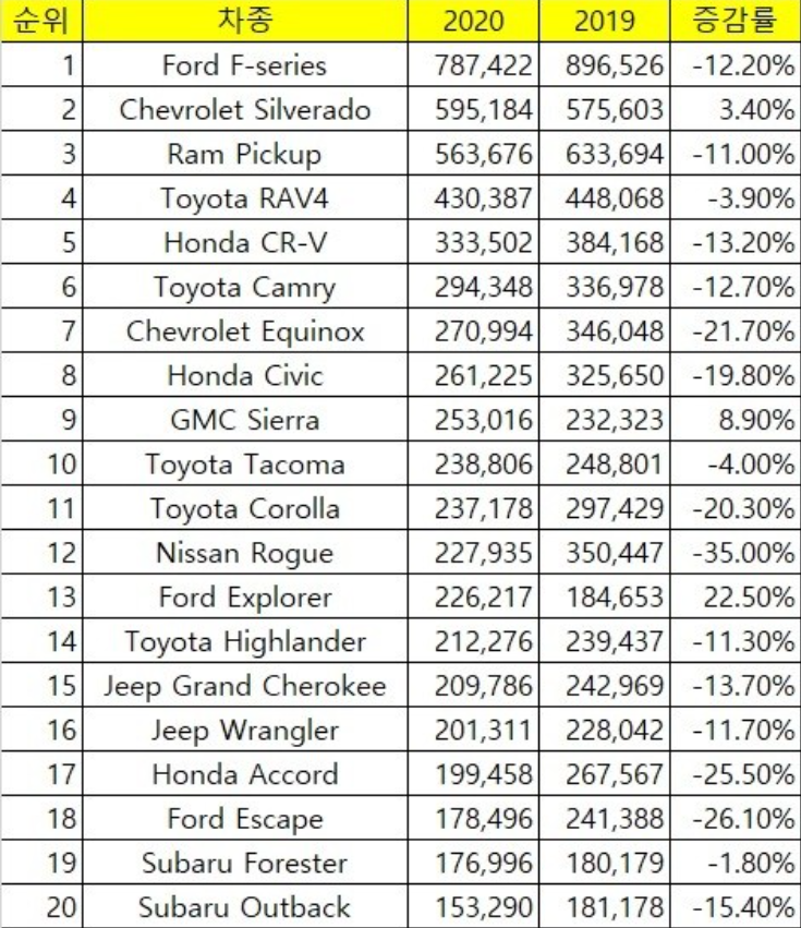 미국 시장에서 국내에 잘 나가는 SUV와 비교하기 힘들 정도로 수배 이상의 높은 판매량을