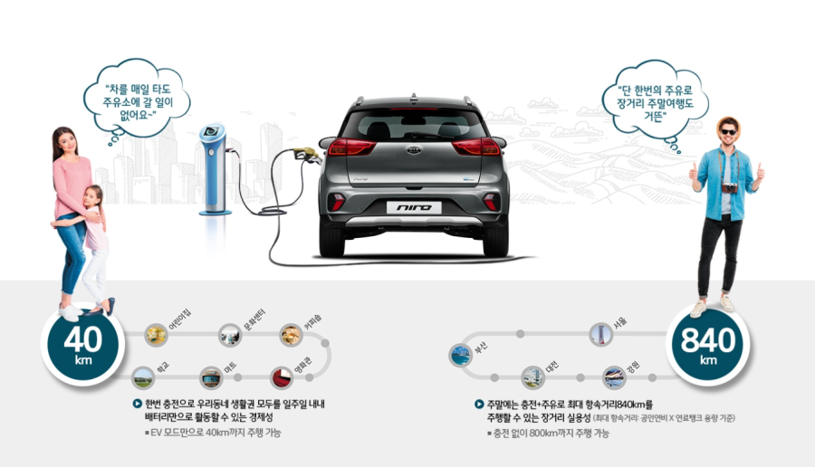 참고로 국내 유일의 니로 플러그인 하이브리드의 경우 공식 주행 거리는 840km이지만 실주행으로 1000km 주행하시는 분들도 많이 볼 수 있었죠!