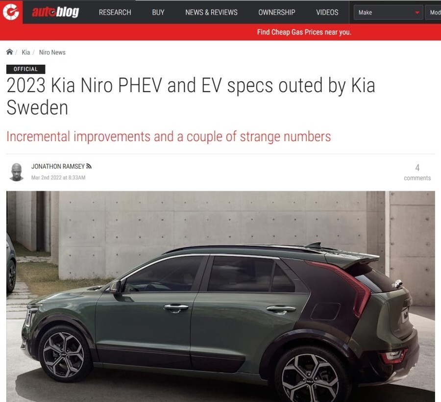 해외 기사를 보면 전기차와 플러그인 하이브리드 차량의 스펙이 기아 스웨덴 법인을 통해서 공식 확인이 되었다고 하는데...
