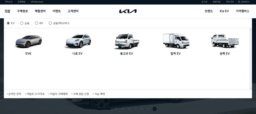 신형 니로가 출시되었지만 여전히 기아 공홈 EV 카테고리에는 기존 니로 EV가 노출되어 있습니다.