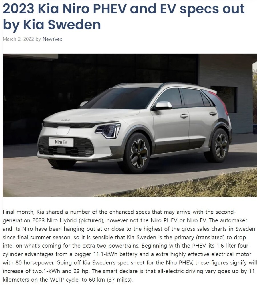 해외 기사를 보면 전기차와 플러그인 하이브리드 차량의 스펙이 기아 스웨덴 법인을 통해서 공식 확인이 되었다고 하는데...