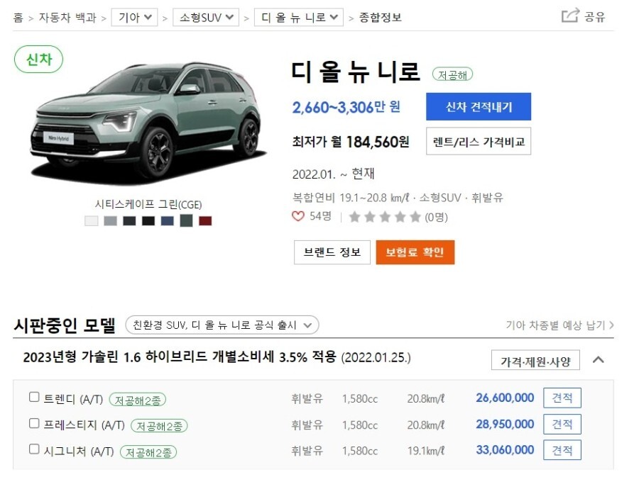최근 출시된 소형 SUV 니로 하이브리드는 풀 옵션 가격이 4천 만원에 도달하기 때문에
