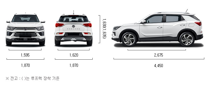 공개된 제원표를 보면 토레스의 전장은 4700mm로 중형의 기준을 맞췄네요!