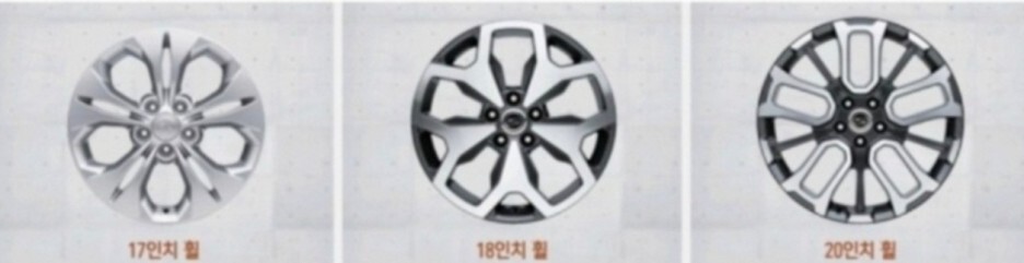 18인치는 고급형 휠이며, 20인치는 풀옵션에 해당되는 하이디럭스 패키지 170만원을 선택한 경우에