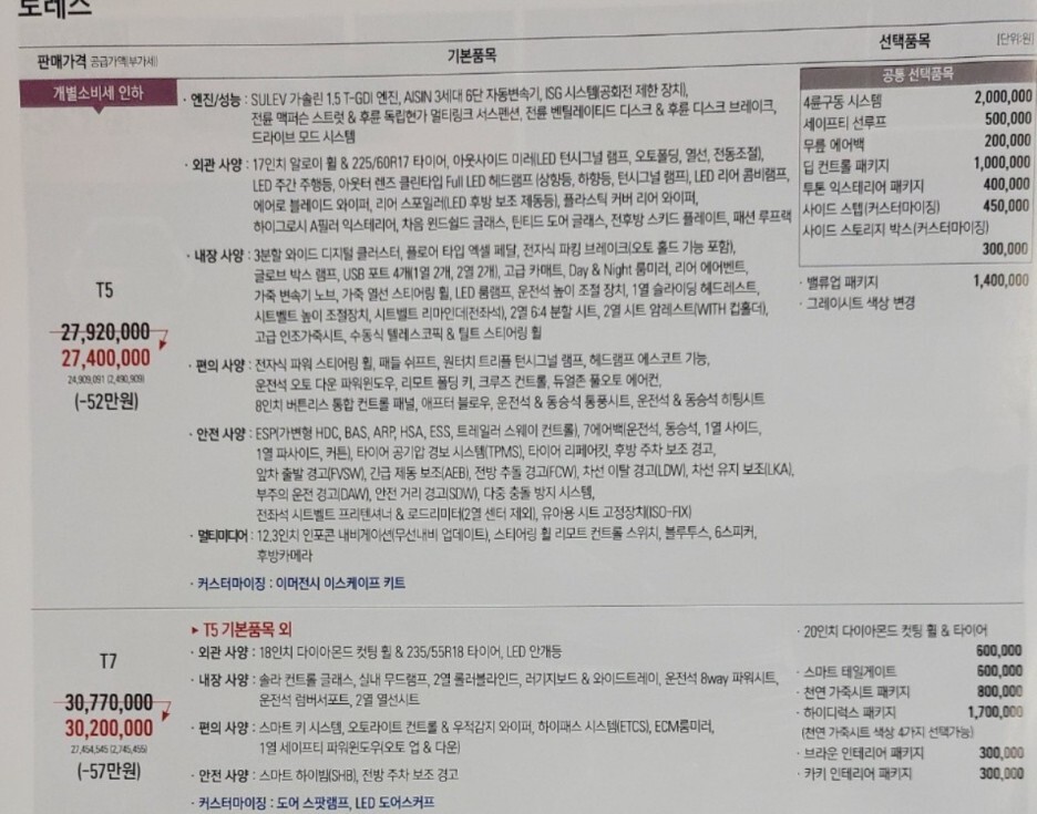 신차 출시 하루 전에 공개된 가격표인데, 여기서도 오타가 발견된 점은 아쉬운 부분입니다.