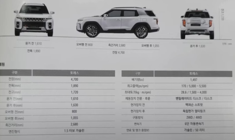 쌍용 토레스! 몰랐던 정보! 신차 발표회 하이라이트! 세부 수치자료