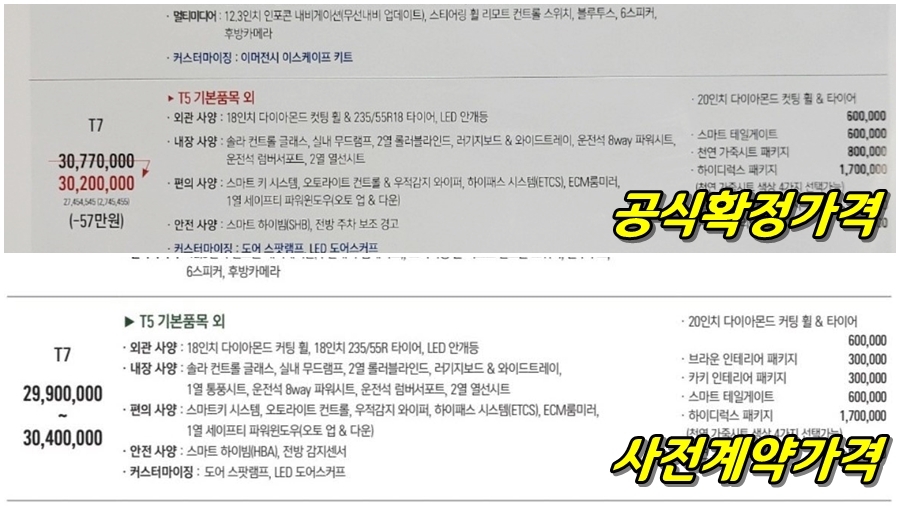 고급형인 T7의 경우 2990~3040만원이 사전 계약 가격이었죠!