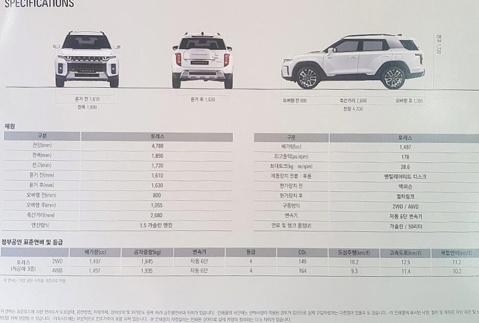 쌍용 토레스! 몰랐던 정보! 신차 발표회 하이라이트! 세부 수치자료