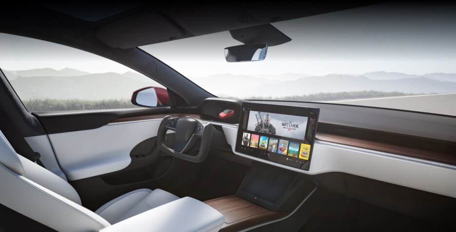 살짝 보이는 계기판은 예상외의 디자인이 보이는데, 전기차에서는 엔진 회전수가 표시되지 않지만..
