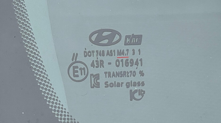 5미리 두께에 하단에 HUD 마크를 볼 수 있는데 HUD 전용 유리로 일반 유리 보다 2배 정도 비싸다고 하죠!