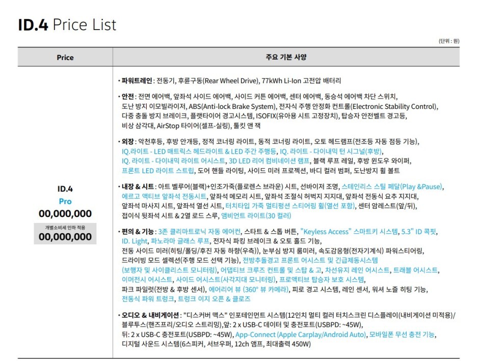 아이오닉5 킬러! 폭스바겐 ID.4 공식자료!