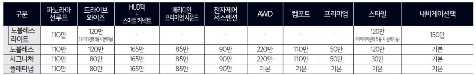 하이브리드 / AWD / 리클라이닝 3가지는 겹칠 수 없는 옵션이라는 것인데요.