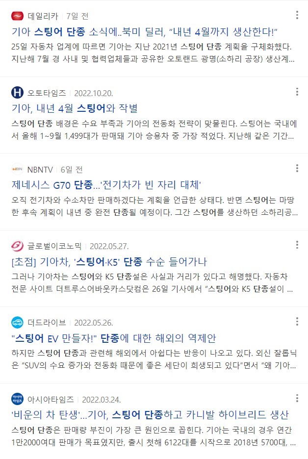 최근 스팅어를 단종 소식을 들으셨요?