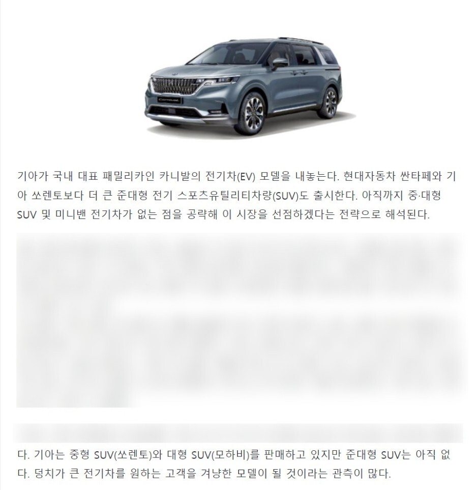 자동차 매체의 기사를 보면 기아가 국대 대표 패밀리카인 카니발의 전기차 모델을 내놓습니다.