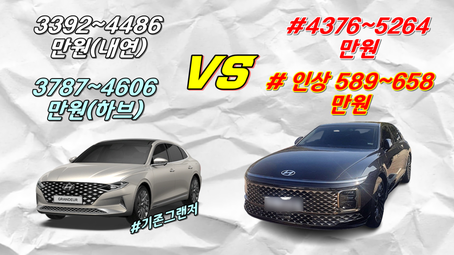 신형 그랜저는 3천만 원 후반대에서 5천 초반이라고 알려드렸는데..
