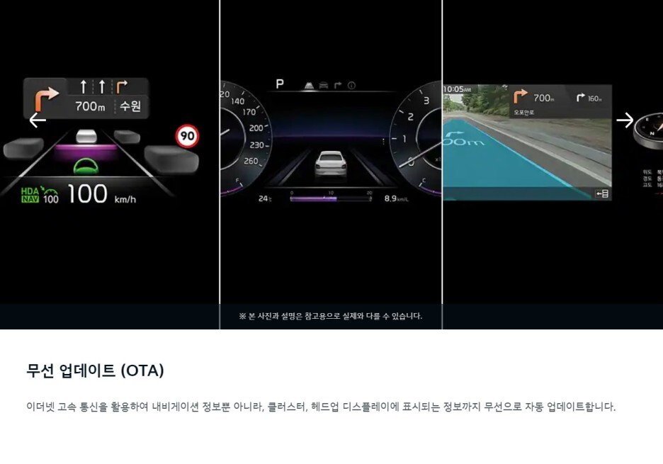 신형 그랜저의 OTA는 스티이어링 휠, 제어 장치, 계기판, 내비게이션. 첨단 운전자 보조 시스템을 포함한