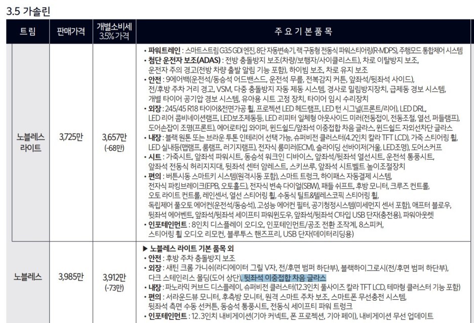 따라서 패밀리를 위한 2열도 더 조용하기를 원한다면 기본부터 이중 접합유리가 적용된 신형 그랜저가 좋겠죠?