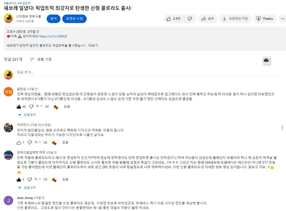 이번 영상에서는 신형 콜로라도에 대해서 알려드렸습니다.