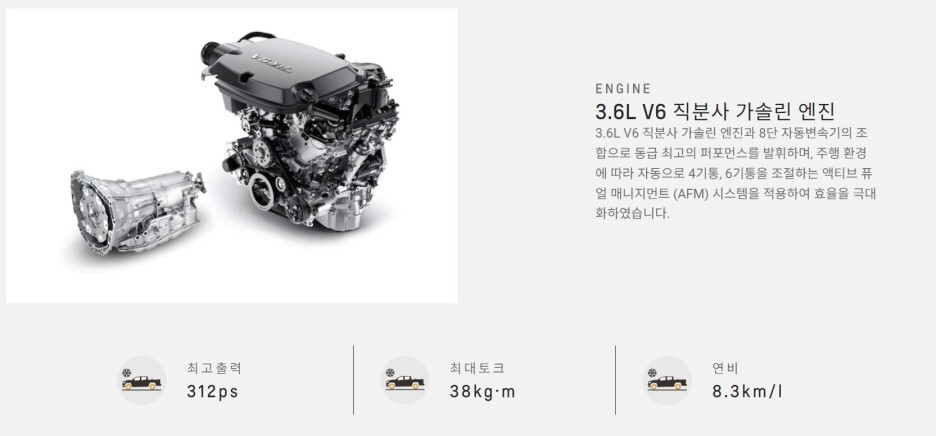 기존 콜로라도는 3.6 자연흡기 6기통 가솔린 엔진을 제공합니다.