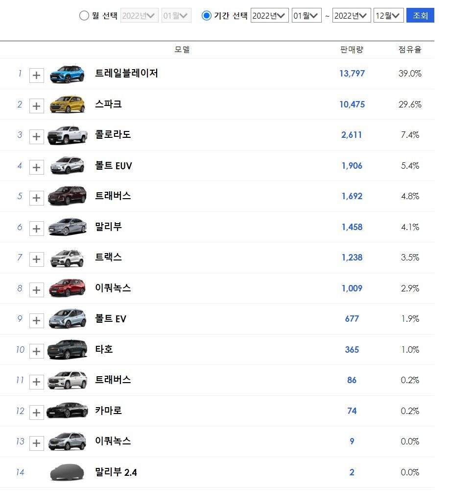 쉐보레도 희망의 불빛은 있는데, 높은 판매량을 자랑하는 트레일 블레이저는 국내에도 인기 차량이지만