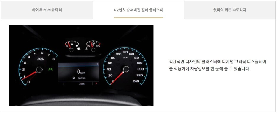 신형 콜로라도 계기판과 비교해 보면, 한 세대 차이의 차량이 아닌 것처럼 보이죠?