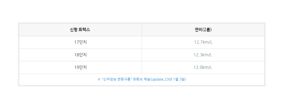 신형 트랙스 연비는 12~12.7km 이걸 기억하세요!