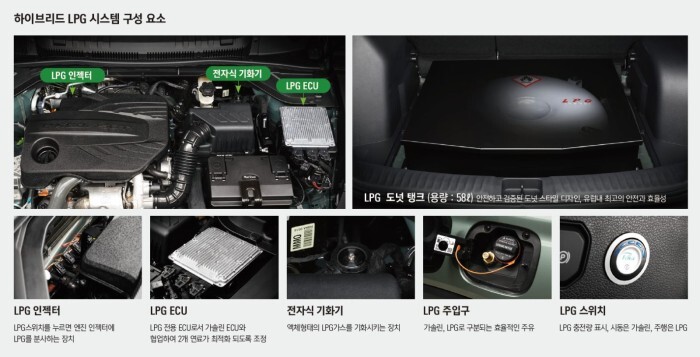 엔진에 LPG를 위한 부품이 추가로 탑재됩니다.