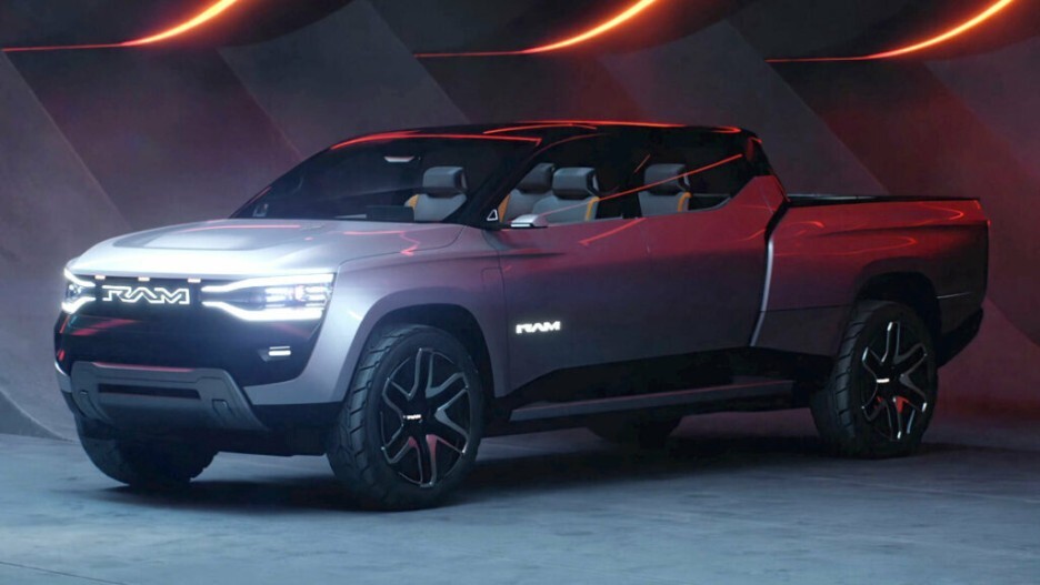 램 레볼루션 1500 으로 보디 온 프레임에 전기 픽업트럭입니다.