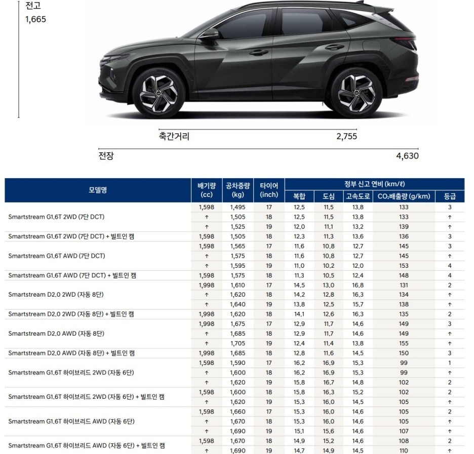 참고로 투싼의 경우 1.6 가솔린 터보 엔진에 7단 DCT가 조합되는데,