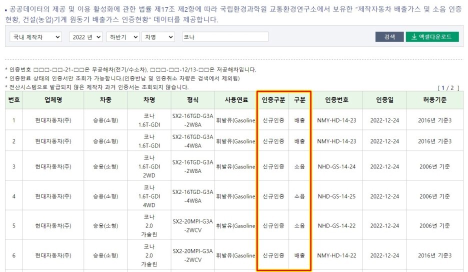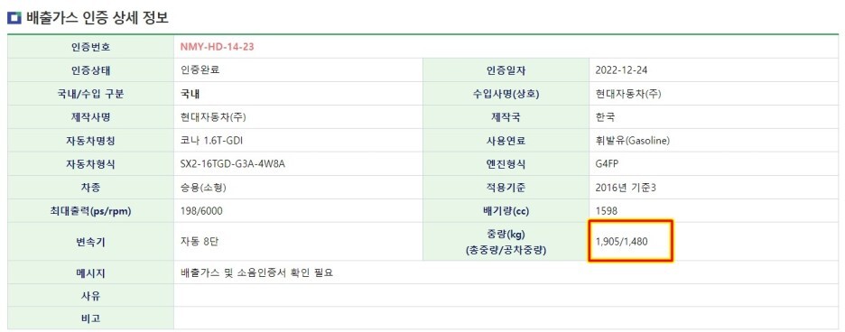 드디어 업데이트가 되었네요! 신형 코나의 인증 정보가 확인되었습니다.