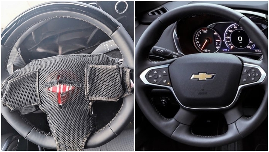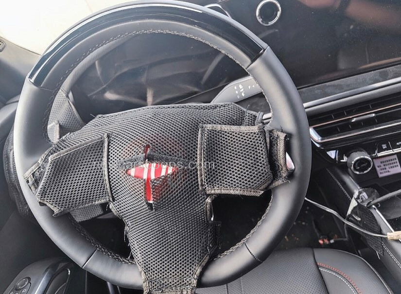 세부적으로 보면 새로운 스티어링 휠 디자인 가려져 있지만, 3스포크 디자인을 위장 커버를 통해서 알 수 있습니다.