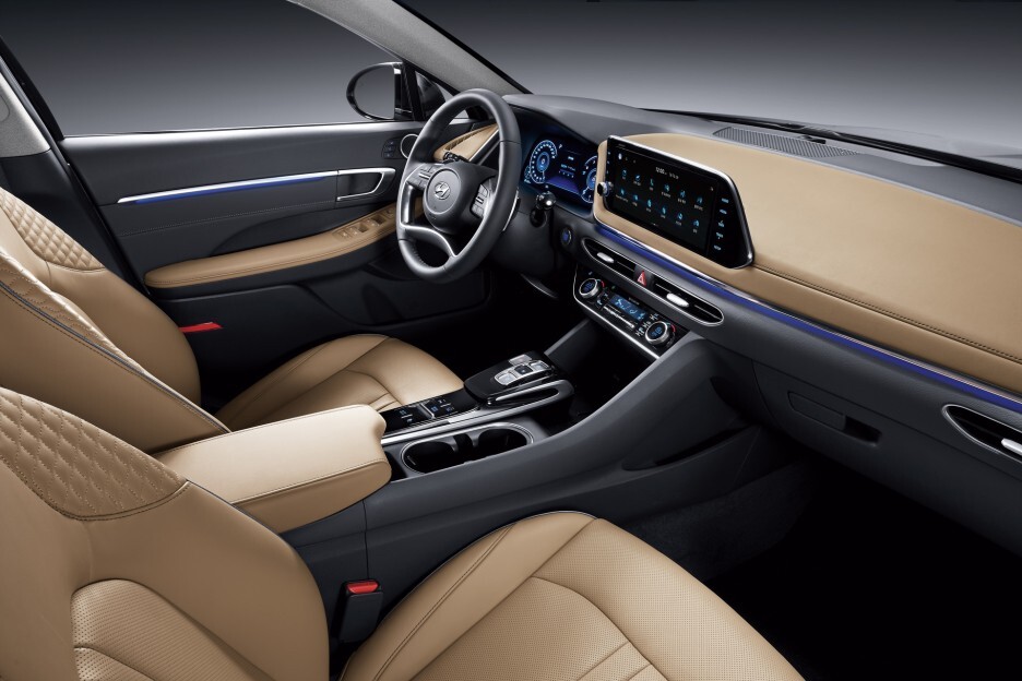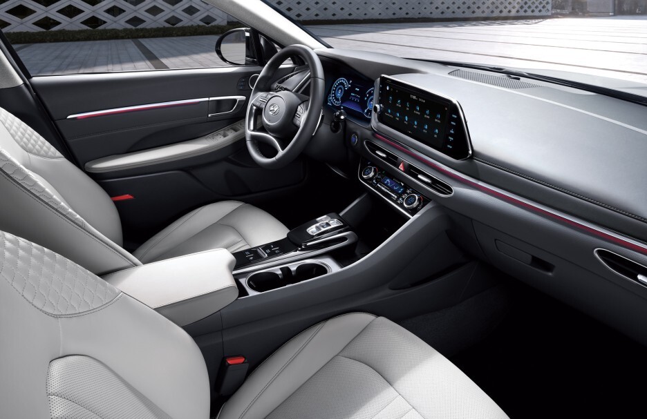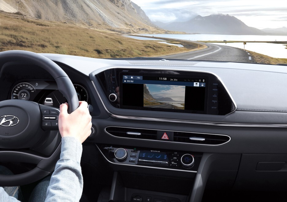 기존 쏘나타와 다른 디자인의 파노라마 디스플레이가 장착된 것을 확인할 수 있습니다.
