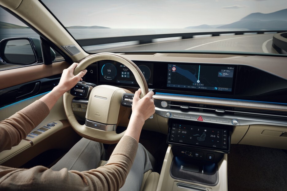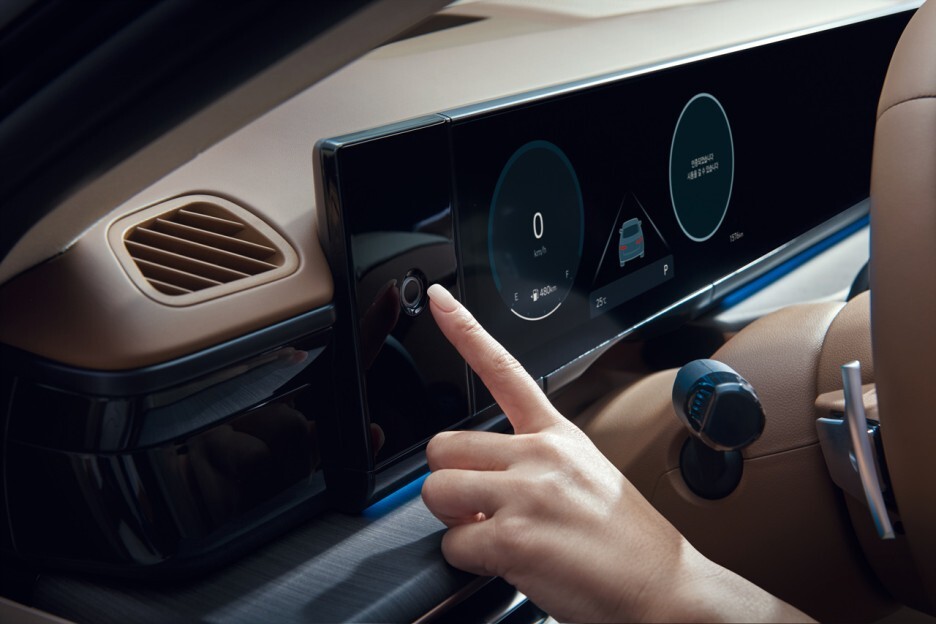 현대차의 최신 차량에서는 계기판과 내비가 하나로 연결된 파노라마 디스플레이가