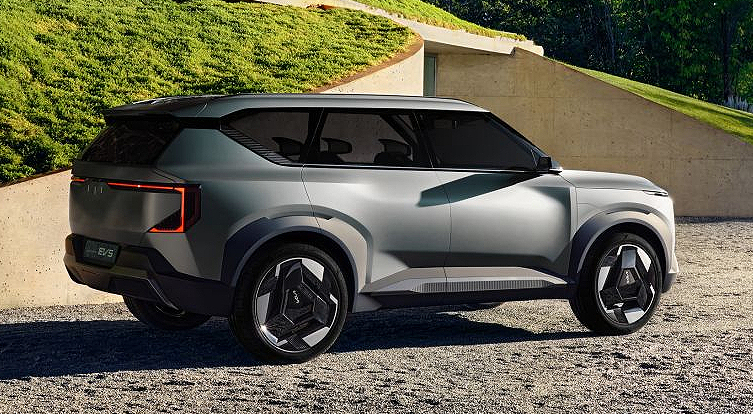 차이점이 있다면 EV9 측면부의 포인트 디자인으로 세 개의 꼭짓점이 모이는 삼각형 디자인을 측면부에 삽입하면서 파격적인 모습을 보여주었죠?