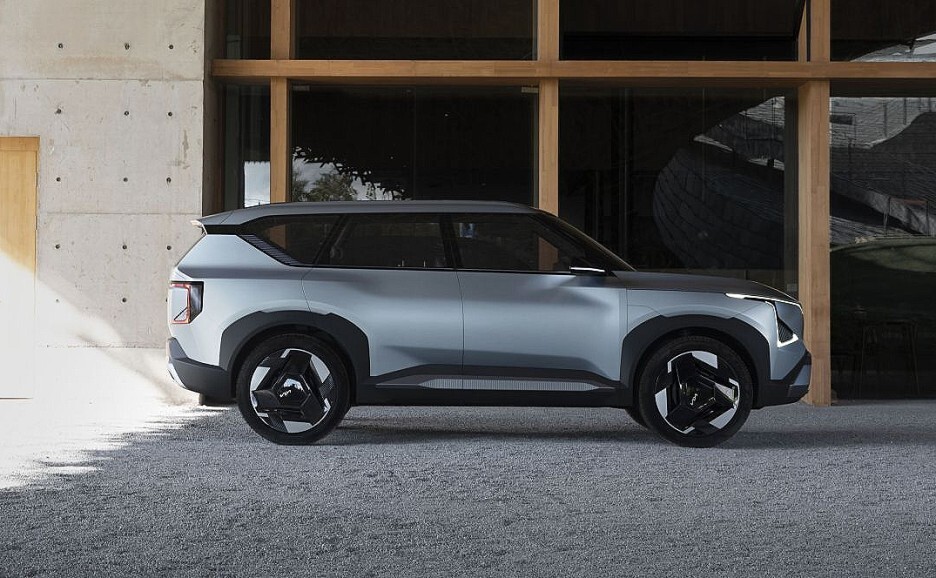 차이점이 있다면 EV9 측면부의 포인트 디자인으로 세 개의 꼭짓점이 모이는 삼각형 디자인을 측면부에 삽입하면서 파격적인 모습을 보여주었죠?
