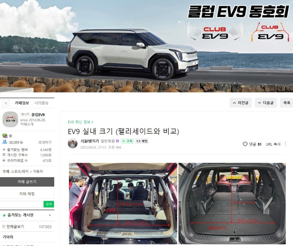 EV9 실제 차량을 보고 나서 팰리세이드와 비교해 보려고 준비하고 있었는데 클럽 EV9 서울|별지기 님께서