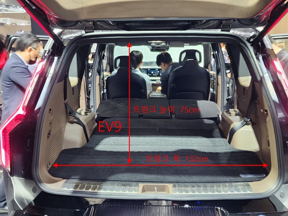 3열 시트의 크기는 전기차 EV9이 높이에 있어서 살짝 낮고, 트렁크 바닥 쪽은 2cm 정도 긴 것을 알 수 있습니다.