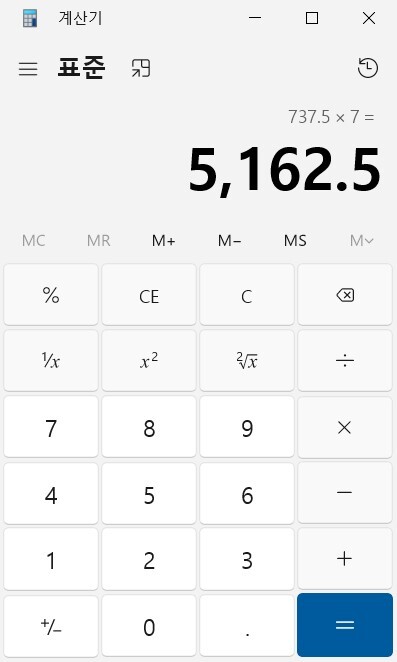 7개라고 하면 5162mm라서 차이가 너무 크죠?