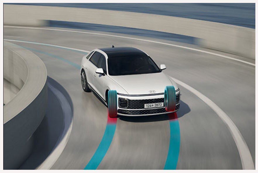 주행 성능을 개선하는 기술은 E-EHA입니다. Electrically Evasive Handing Assist의 약자로,