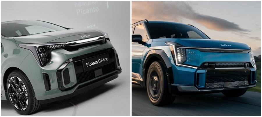 동시에 기아에 가장 막내인 신형 모닝과 최상위 EV9을 비교해 보면...