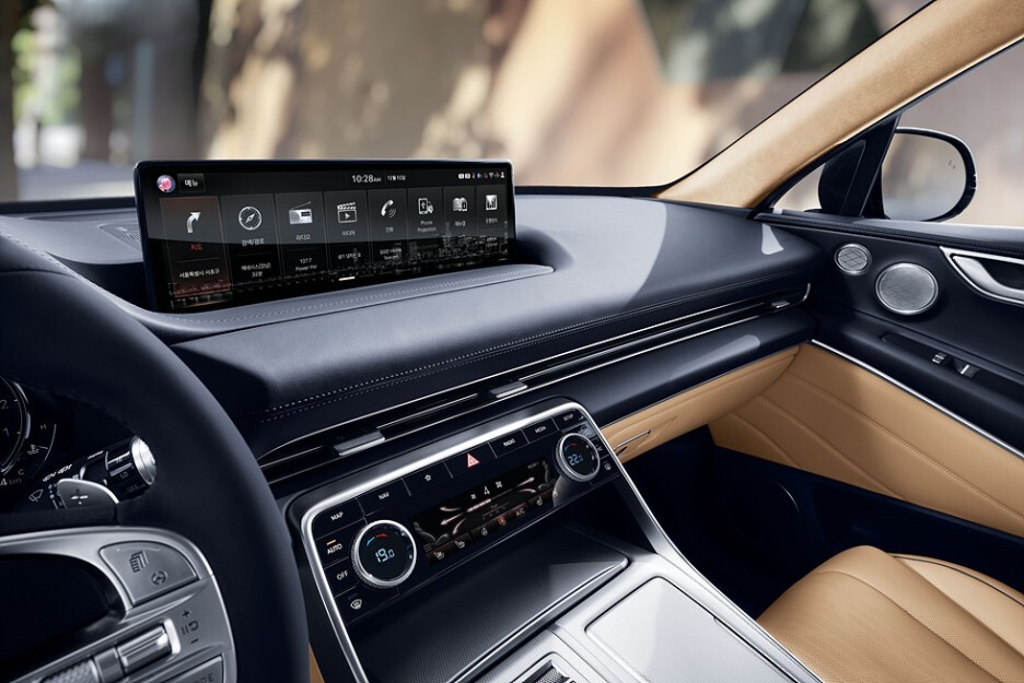 누구나 쉽고 빠르게 조작할 수 있는 형태는 제네시스 차량에서 제공되는 방식으로 2개의 원형 다이얼을 돌리면서 바로 온도를 알 수 있으며