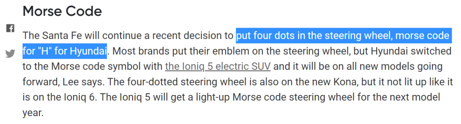 이상엽 부사장의 입으로 4개의 점이 제공되고 현대를 상징하는 H 모스 코드라는 것이 확인되었습니다.
