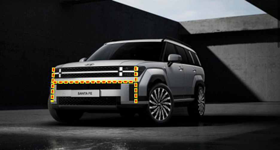 신형 싼타페는 블랙 클래딩이 차량 하단부를 전체를 감싸면서 차량이 한결 날씬해 보이는 디자인을 채택했습니다.